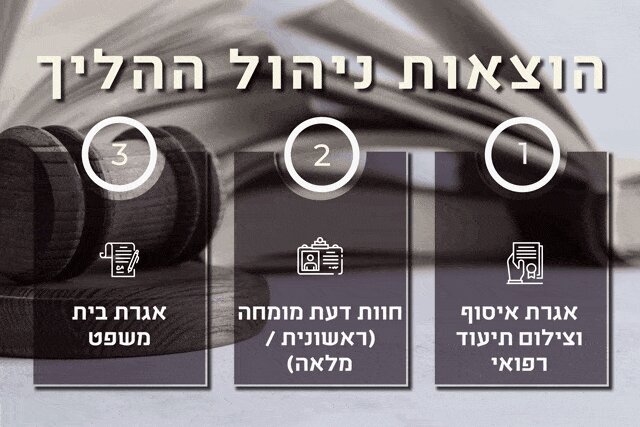 לאחר מכן, פועלים בעזרת המומחים לעריכת חוות דעת רפואיות מתאימות ועל בסיסן עורכים כתב תביעה לבית המשפט.